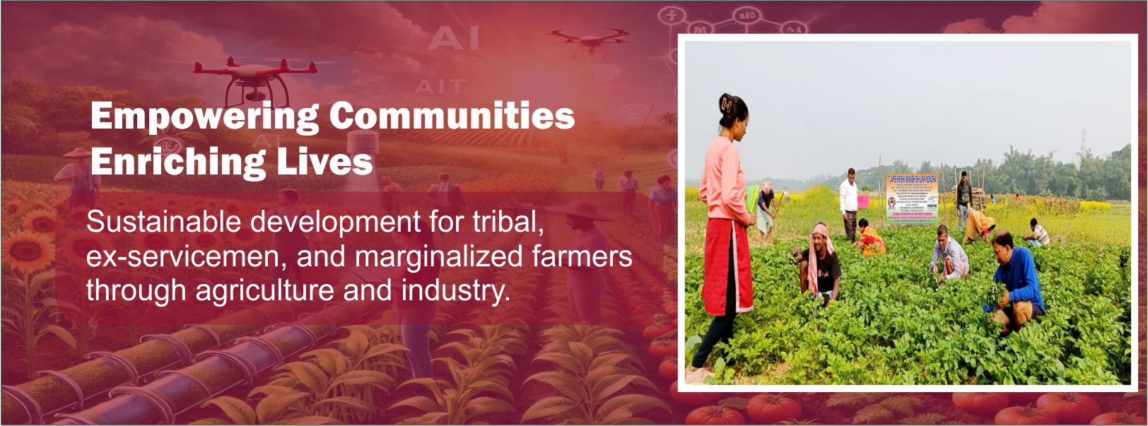 Empowering villages through sustainable farming practices, promoting agri-based livelihoods, and ensuring inclusive growth for Tapsil Jati, Adivasi, and Veteran communities.